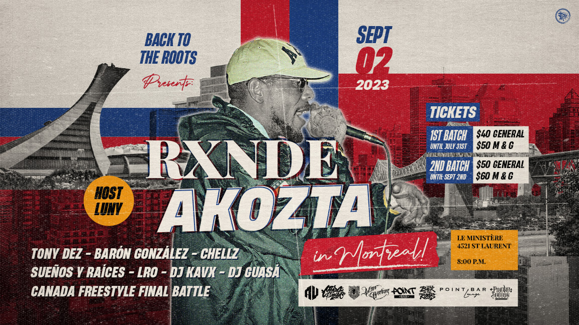 Afin de célébrer son deuxième anniversaire et les 50 ans du Hip Hop, Back to the Roots présente l’un des rappeurs les plus important de la scène Latino-Américaine, Rxnde Akozta. Il se produit en tournée à guichet fermé dans différentes villes d'Amérique latine, des États-Unis et de l'Europe. Il compte des millions de visionnements sur les réseaux sociaux ainsi que d'un public fidèle qui récite les paroles de ses chansons partout où il va.