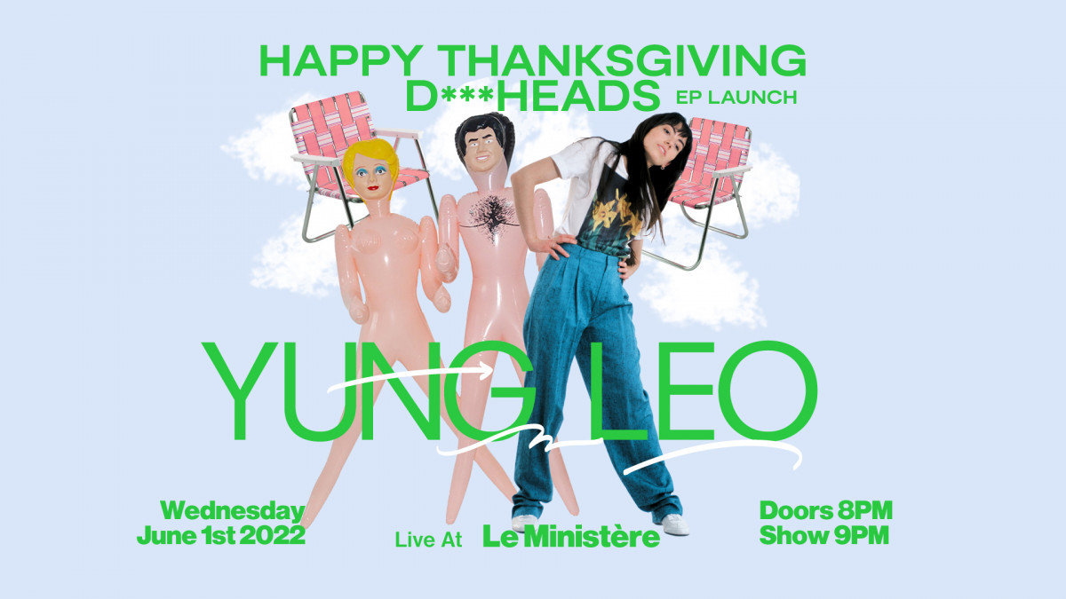 A fascinating newcomer on the music scene, Yung Leo has made the most out of her 100% indie journey so far, surrounding herself with the renowned Mike Clay (Clay and Friends), Tim Buron (Charlotte Cardin, Laraw), and Connor Seidel (Grae, Ralph) as co-producers. From the magnetic, trippy ''Woke Up Early'' to ''You're Not Special'' which first caught our ear in October 2021, Happy Thanksgiving D***heads is a first salvo of catchy yet complex compositions. Fr: Apparition aussi récente qu’intéressante dans le paysage musical actuel, l’artiste connaît un reluisant début de trajectoire 100% indépendante, entourée des très en vue Mike Clay (Clay and Friends), Tim Buron (Charlotte Cardin, Laraw), et Connor Seidel (Grae, Ralph) à la co-réalisation. De «Woke Up Early», avec sa langueur aérienne et magnétique, jusqu’à «You’re Not Special» qui nous a mis la puce à l’oreille en octobre 2021, Yung Leo offre avec son premier EP «Happy Thanksgiving D***heads» une première sélection de compositions fédératrices, profondes et musicalement riches.