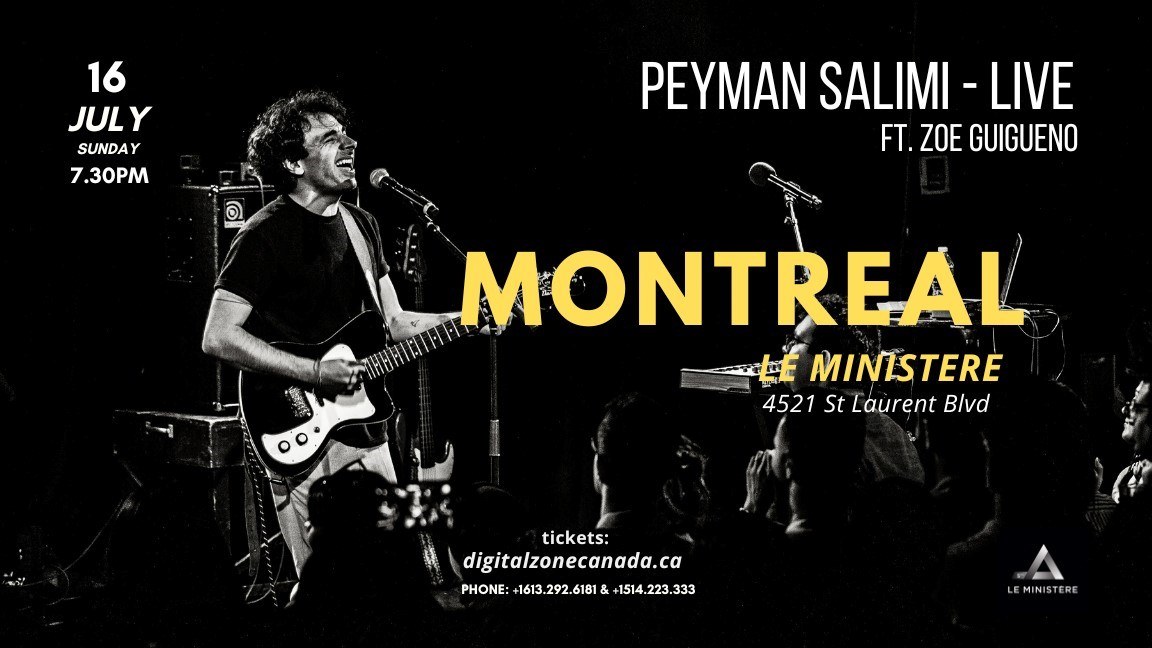 Peyman Salimi is playing his first ever headliner show in Montreal at Le Ministere, on July 16. He’s performing a set of his new songs from his new album, The Psychology of Letting Go. The artist is taking this opportunity to raise awareness and to show his support to all the women of Iran who are risking their lives everyday in their legitimate protest against the brutality of the Iranian regime. Canadian bass player and singer-songwriter, Zoe Guigueno, will accompany the artist for this performance.