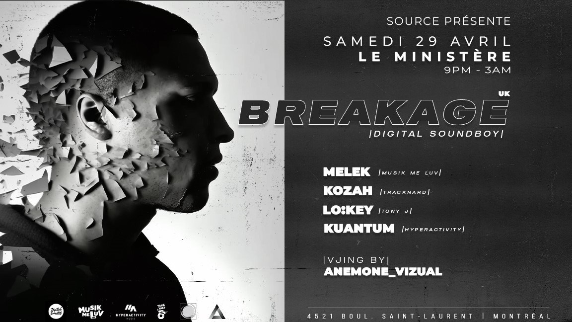 E à l’honneur de ramèner BREAKAGE pour leur deuxième soirée !